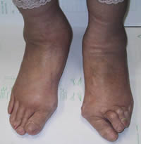 Rheumatoide Fußwurzel links, Rheumatoides Kniegelenk